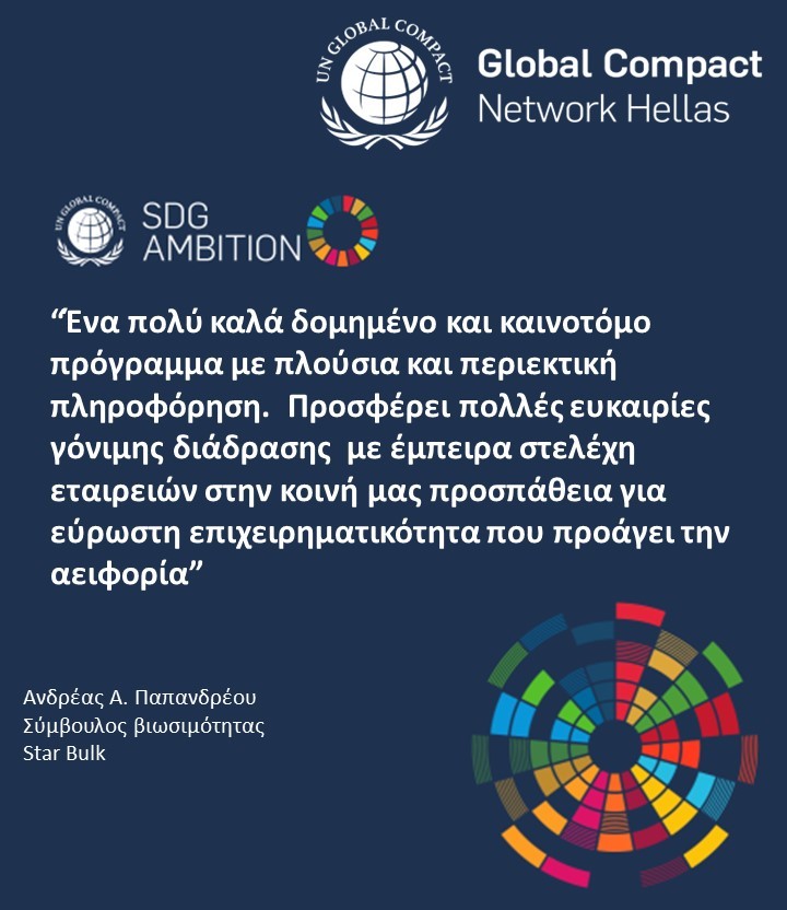 Ακολουθούν testimonials από στελέχη των ελληνικών επιχειρήσεων-μελών του UN Global Compact Network Hellas που παρακολούθησαν το πρόγραμμα: